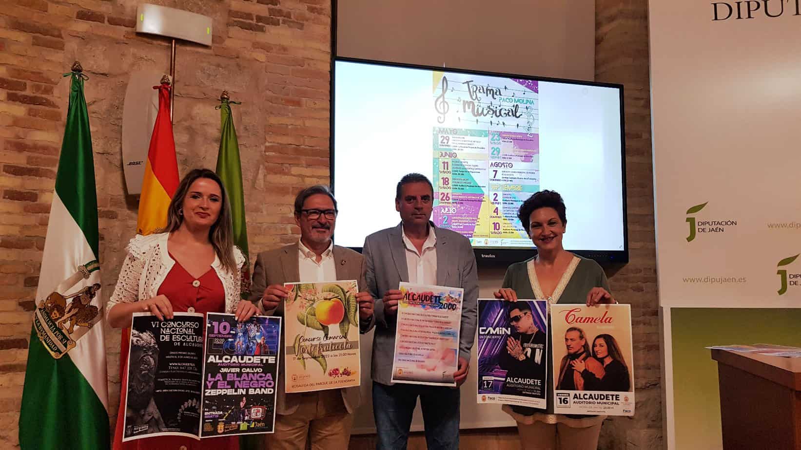 El Ayuntamiento de Alcaudete ofrecerá hasta el mes de septiembre una completa y variada programación cultural en la que la música, las artes plásticas y las ferias y fiestas serán las protagonistas. El diputado de Cultura y Deportes, Ángel Vera, ha participado junto al alcalde de Alcaudete, Valeriano Martín, y la concejala de Ocio y Participación Ciudadana, Micaela Molina, en la presentación de los programas “Alcaudete 2000 en las artes plásticas y aplicadas” y el festival “Trama Musical Paco Molina” de esta localidad, así como de los conciertos de Camela y Camin que tendrán lugar en el marco de la Feria de Alcaudete.