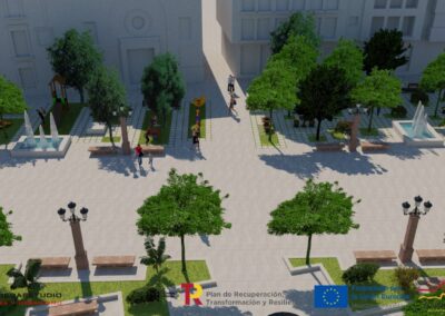 En concreto, las obras tienen como objetivo unificar ambas plazas, con elementos de diseño urbano y zonas verdes, dando una mayor visibilidad y realce a los edificios monumentales del entorno, reduciendo el tráfico innecesario y creando nuevas zonas de paseo y convivencia. Igualmente, esta fase de actuación será complementada con otras intervenciones en calle Isidoro Miñón y Tercia. De este modo, la inversión asciende a más de 1,8 millones de euros, subvencionados a través de los Fondos Next Generation y con una aportación municipal de 481 mil euros.