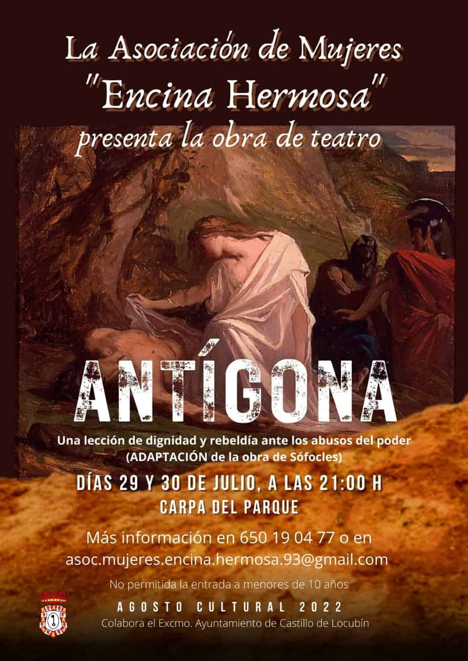 Con «Antígona» el grupo de teatro de la asociación de mujeres Encina Hermosa retoma su vuelta a los escenarios con esta primera obra que representan después de la pandemia. Habrá otra representación en la Carpa del Parque Municipal el sábado 30 de julio a las 21 horas y ya tienen cerrada otra representación en Alcalá la Real para el próximo 17 de septiembre.