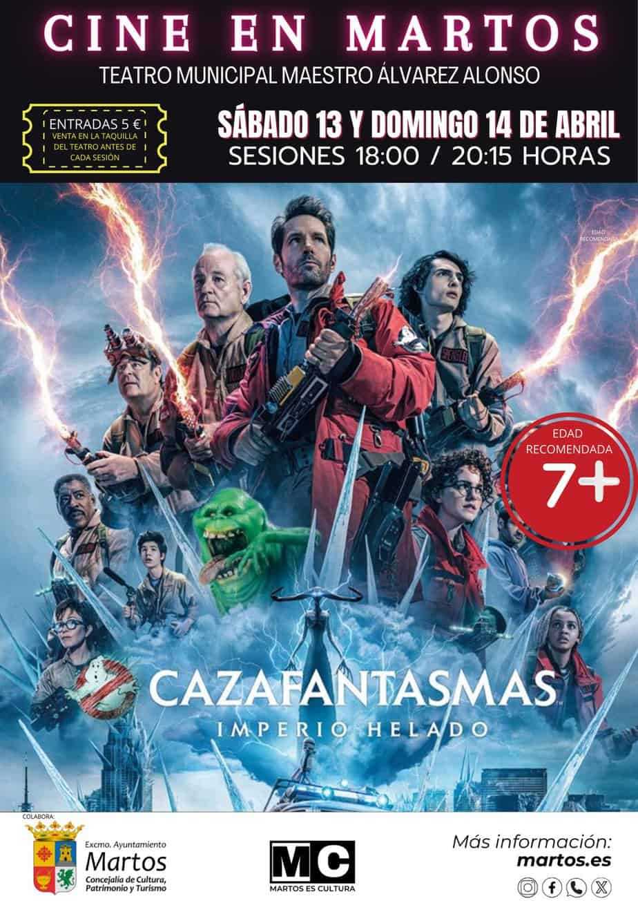 El Teatro Municipal Álvarez Alonso acogerá la proyección de la nueva película de Gil Kenan, Cazafantasmas: el Imperio Helado. Se podrá disfrutar el sábado, 13 de abril, y el domingo, 14, en dos sesiones: 18:00 y 20:15 horas.