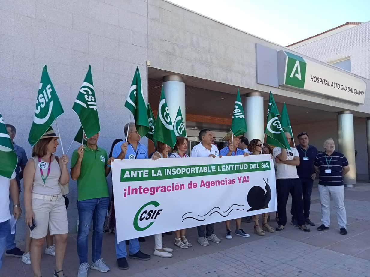 CSIF Andalucía, primera fuerza sindical multiprofesional del Servicio Andaluz de Salud, ha llevado a cabo este jueves concentraciones de protesta en seis hospitales pertenecientes a agencias públicas sanitarias para denunciar la “insoportable lentitud” del proceso de integración de estos centros en el SAS, que afecta a cerca de 10.000 profesionales en toda Andalucía y que, como consecuencia de ello, “están sometidos a una gran incertidumbre y sensación de desamparo totalmente innecesarios”. Solo en el Hospital de Andújar hay casi 700 profesionales, 2.200 en toda la Agencia Sanitaria Alto Guadalquivir que incluye los hospitales de Andújar, Alcaudete, Alcalá la Real y Sierra de Segura en Jaén y Montilla, Puente Genil y Valle del Guadiato en Córdoba.