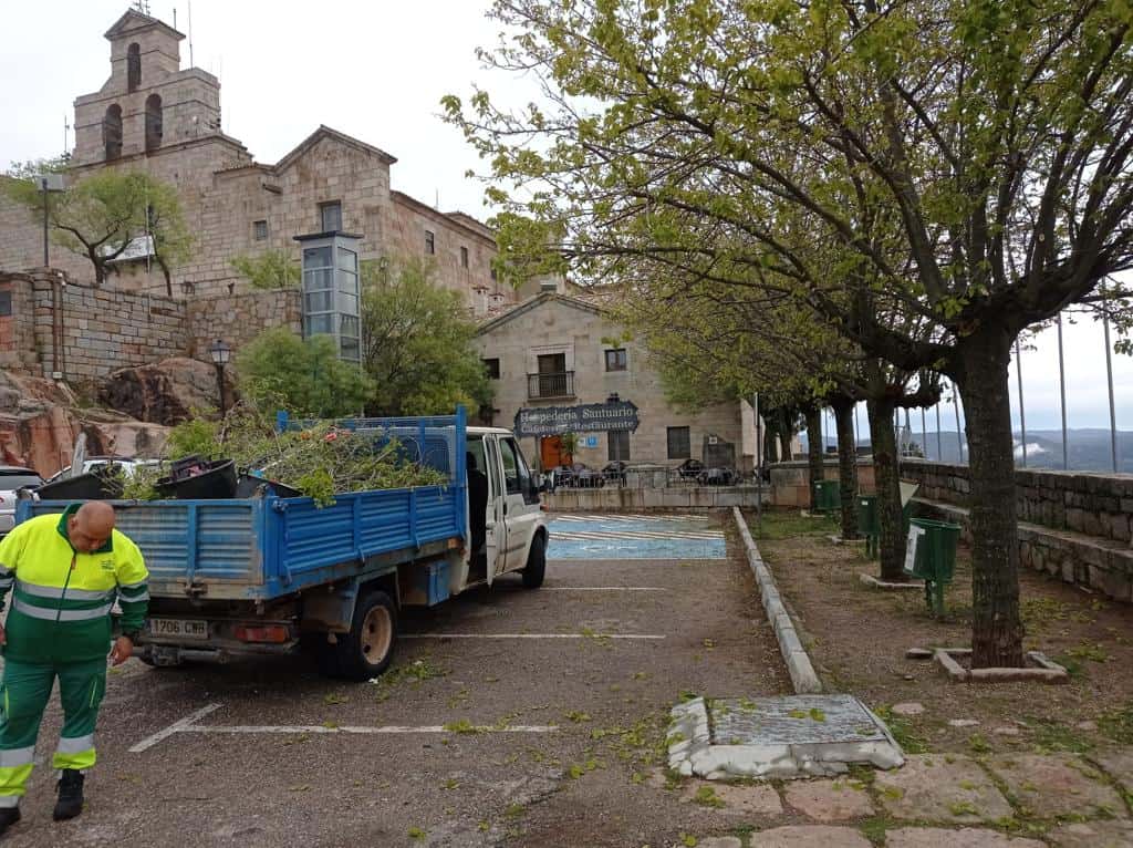 Así mismo, desde el área de Medioambiente, también se propició, adecentó y aseguró estos espacios del poblado con una intervención sobre la arboleda en mal estado y de poda de aquellas ramas que podían suponer algún peligro para los romeros y peregrinos. Igualmente, se llevó a cabo un desbroce generalizado en todo el Cerro como método de prevención y control de incendios.
