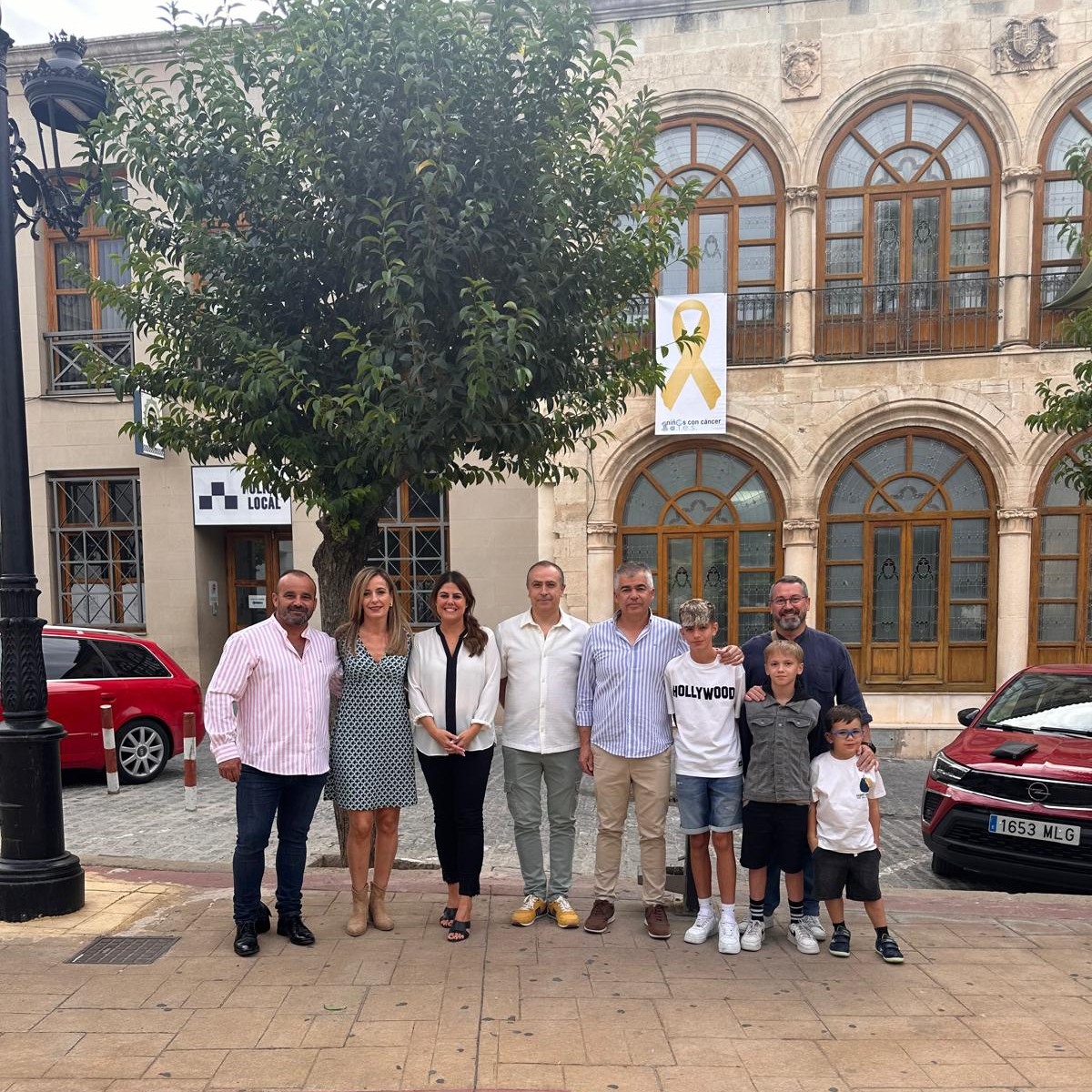 .El Ayuntamiento se suma a la campaña ‘Enciende la esperanza. Enciéndelo en oro’ un año más. Como cada septiembre, vuelve a lucir el lazo dorado en la fachada de la Casa Consistorial para concienciar sobre el cáncer infantil. El alcalde, Emilio Torres; la concejala de Participación Ciudadana, Gema Lara, y los miembros de la Asociación para la Lucha de Enfermedades de la Sangre de Familias de Niños con Cáncer ALES Javier Romero, Macarena Puerma, Juanma Gila y Manuel López colocaron la lona.