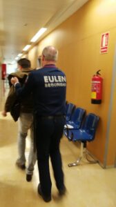 En ese momento, el agresor es evacuado del edificio por parte del vigilante de seguridad. Pasados unos minutos, regresa sin que ningún profesional se percate de ello, accede al sótano y, provisto de un mechero, prende fuego a una papelera. Los sistemas anti incendios se activan y ello pone en marcha el Plan de Emergencias, haciéndose necesaria la llamada al 112 y la posterior evacuación general de los ocupantes del centro. Tras la actuación del “equipo de primera intervención”, que conforman dos profesionales, el jefe de Emergencia declara el fin de la misma, una vez sofocado el conato de incendio, volviendo a la normalidad la actividad en el edificio.