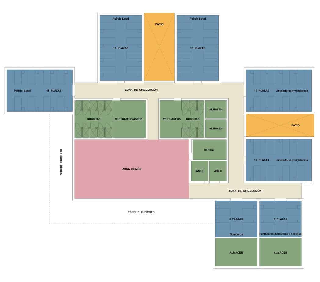 El edificio múltiple con capacidad para 96 personas estará destinado a efectivos de Policía Local y Bomberos, así como trabajadores de los servicios de limpieza, vigilancia y mantenimiento.