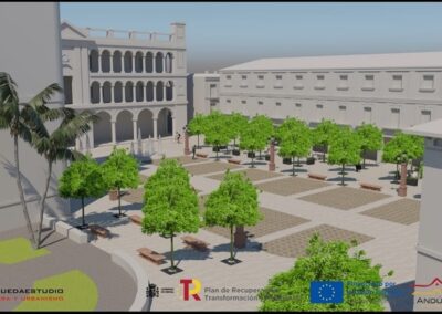 La idea es unificar ambas plazas con elementos de diseño urbano y zonas verdes, dando una mayor visibilidad y realce a los edificios monumentales del entorno, reduciendo el tráfico y creando nuevas zonas de paseo y estancias para la convivencia.