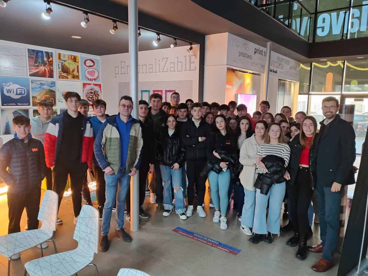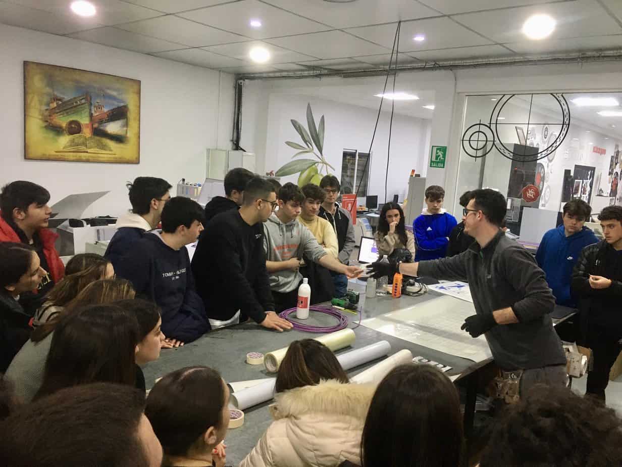 El alumnado de Bachillerato del colegio San Antonio de Padua ha visitado hoy las instalaciones de la empresa Pacoprint, con el objetivo de conocer su departamento de Diseño Gráfico así como el taller de fabricación, donde han podido conocer y experimentar con los nuevos equipos de impresión láser y de alta frecuencia recientemente adquiridos por la empresa.