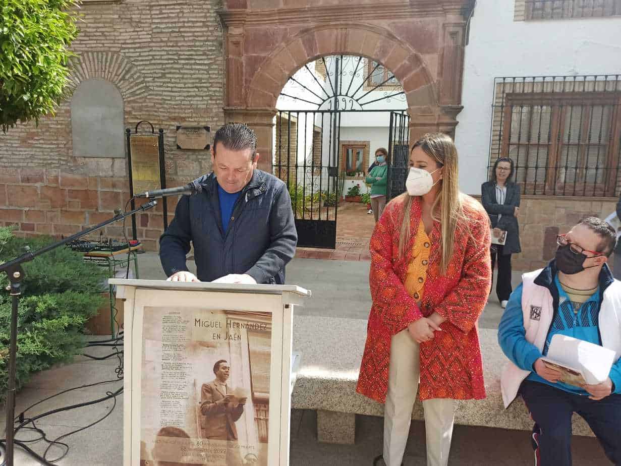 En un acto que se celebró de forma simultánea en distintas localidades de la provincia, la plaza de Andalucía de Villanueva de la Reina fue testigo en el pasado 28 de marzo del homenaje que se rindió a la figura del poeta Miguel Hernández al cumplirse en este 2022 el 80º aniversario de su fallecimiento.