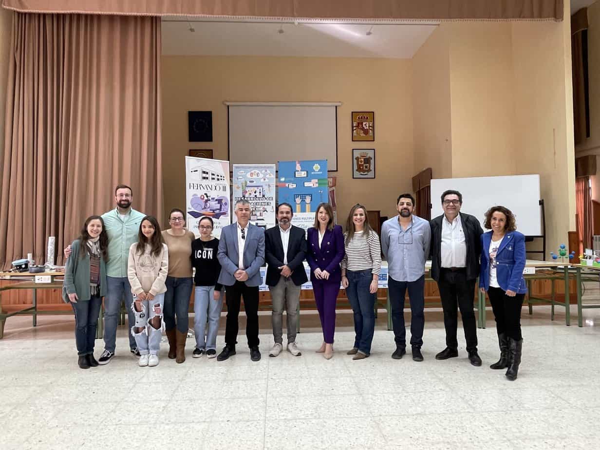 El alcalde de Martos, Emilio Torres, junto con el director del IES Fernando III, Manuel Caballero, la presidenta de ASEM, Ana Belén Molina, así como profesorado y alumnado, han participado en la inauguración de esta semana
