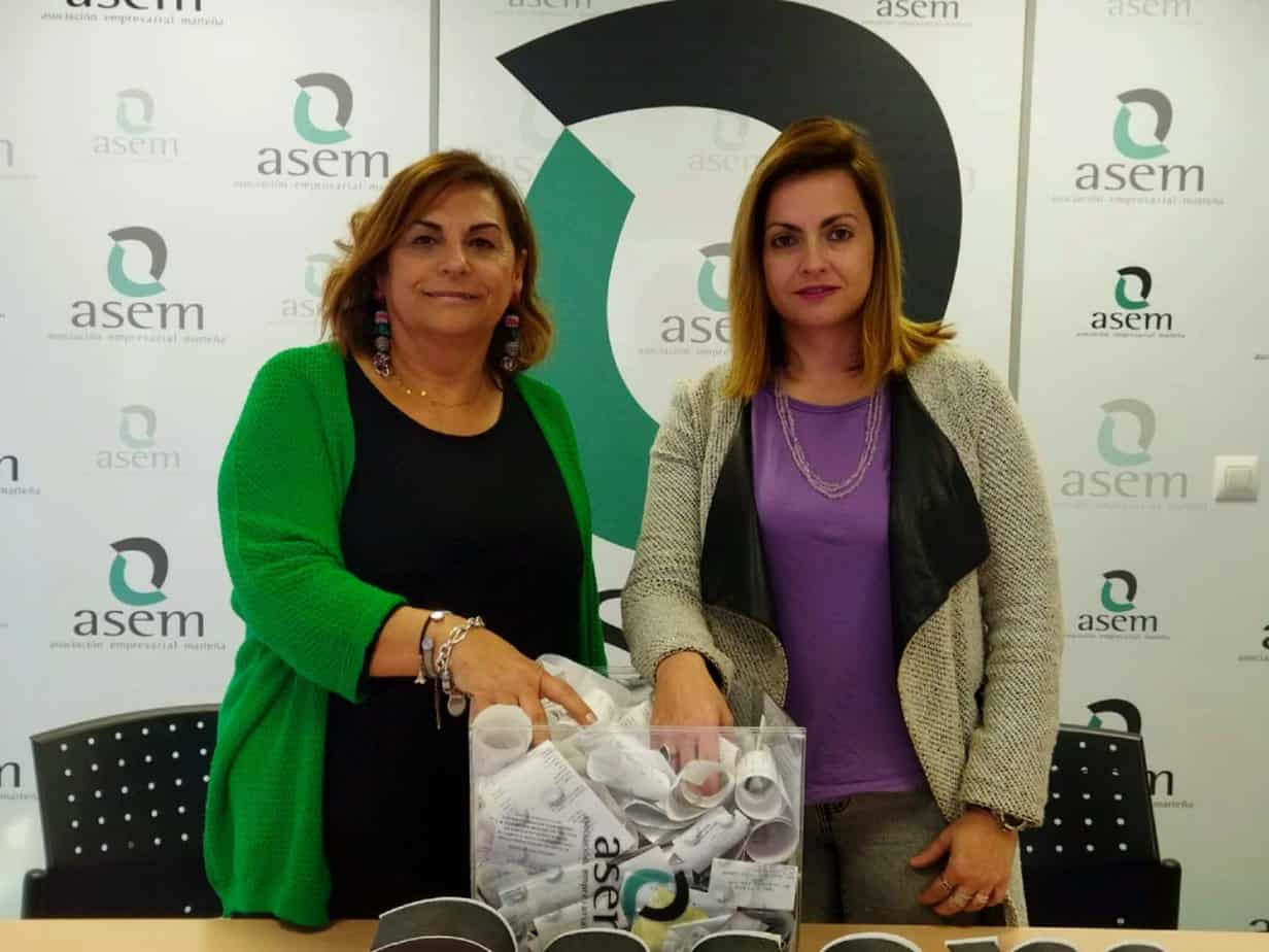 La secretaria de ASEM, Paola Gener, y la concejal de igualdad, Ana Matilde Expósito, han realizado esta mañana el sorteo correspondiente a la Campaña de los Enamorados organizada por ASEM con la colaboración del ayuntamiento y el patrocinio de Caja Rural.