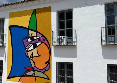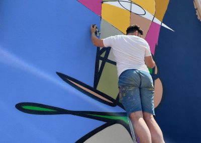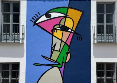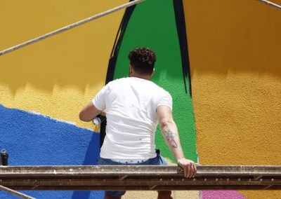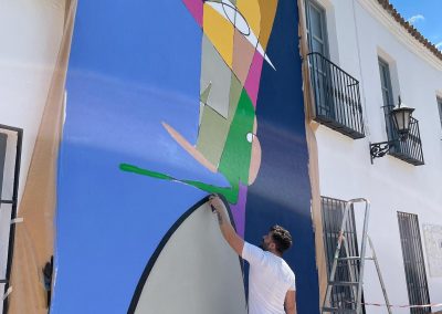 El artista linarense Belin y el grupo Rampa han sido los encargados de pintar los nuevos murales de su fachada.