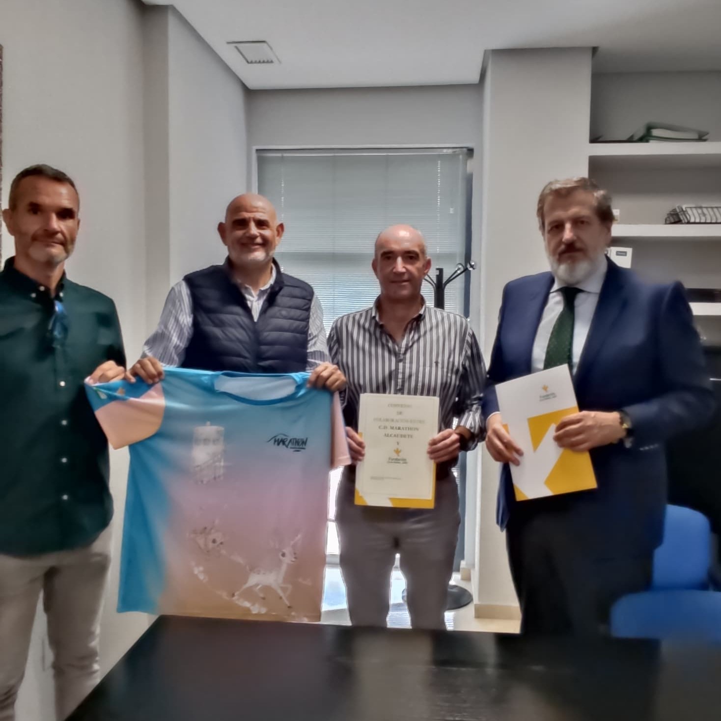 Esta mañana ha tenido lugar la firma de colaboración entre la Fundación Caja Rural y el CD Marathon Alcaudete. Esta firma ha convertido a la entidad bancaria como el patrocinador principal de los eventos deportivos que se sucederán este fin de semana en Alcaudete: el I Kilómetro Vertical y III Encuentro CxM Marathon Alcaudete 2024