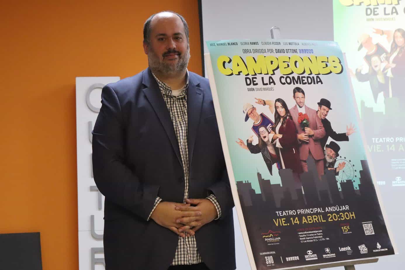 El concejal de Cultura del Ayuntamiento de Andújar, Juan Francisco Cazalilla, ha presentado la obra ‘Campeones de la comedia’, un espectáculo dirigido por la compañía de David Ottone (Yllana), que cuenta con la participación de actores de la película “Campeones”, de Javier Fesser, premio Goya a la mejor película 2019.