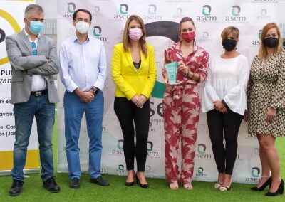 La presidenta de la Asociación Empresarial Marteña (ASEM), Ana Belén Molina, acompañada por la secretaria de la asociación, Paola Gener, la concejal de comercio, María Luisa Pérez, el tercer teniente de alcalde, Emilio Torres y los patrocinadores Rafael Palomino de la consultoría Gescoplus y José Manuel Vera de QMC, Asociados, ha entregado del trofeo acreditativo del premio apoyo al emprendedor, a la joven propietaria del Centro de Estética Avanzada, Penélope Pulido.