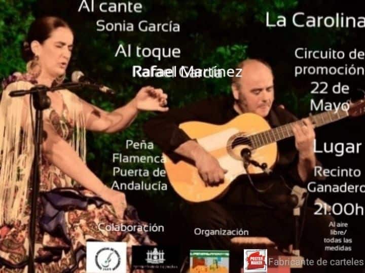 Mañana sábado, a las 21:00 horas, en el recinto ganadero, la Peña flamenca «Puerta de Andalucía» retoma su actividad con el recital flamenco de Sonia García y Rafael Martínez.