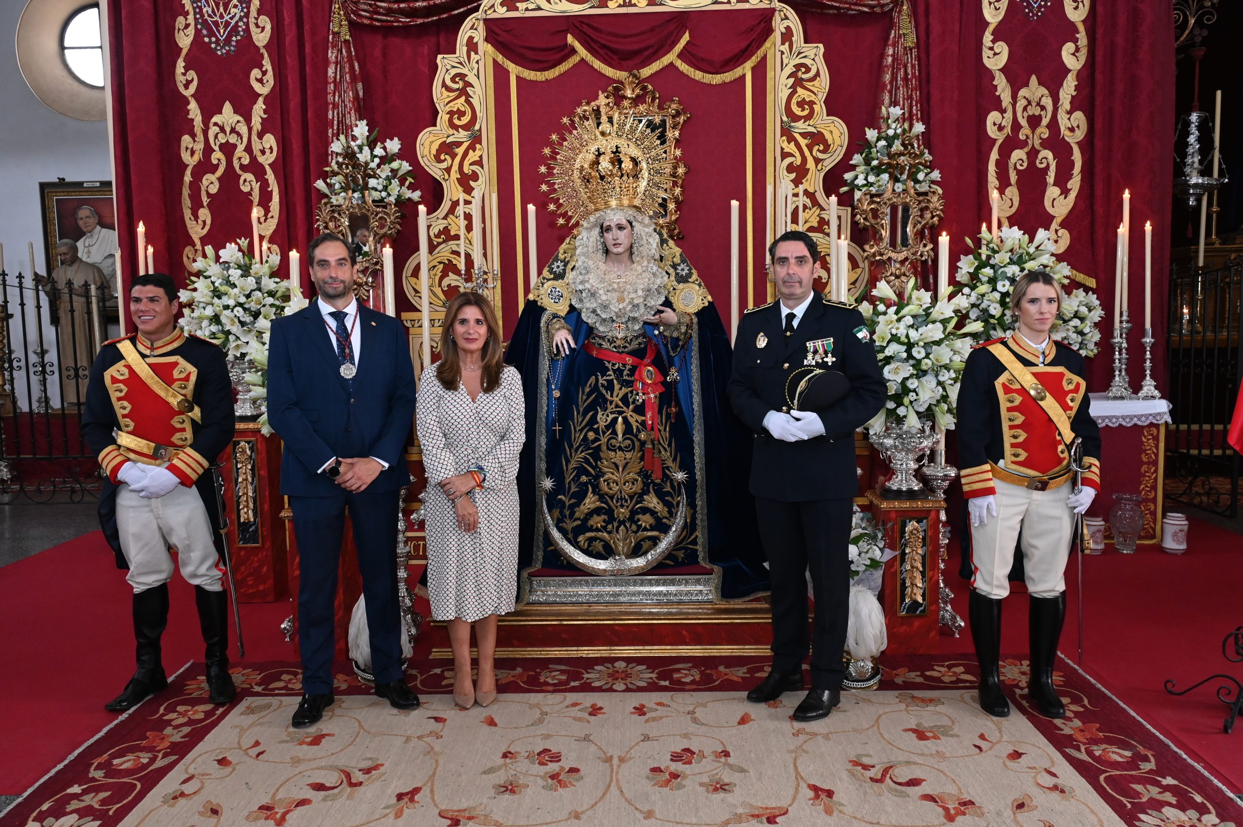 Previamente al acto institucional, la Parroquia de San Agustín acogió una misa en honor de la Virgen del Rosario, a la que asistieron la alcaldesa de Linares y otros miembros de la Corporación Municipal, cofrades de la Hermandad del Prendimiento y representantes institucionales. Al término de la ceremonia, se hizo entrega a Auxi del Olmo del escudo de oro de la citada cofradía, en cuyo libro de honor firmaron tanto la dirigente como el jefe de la Policía Local. Así mismo, se llevó a cabo una ofrenda floral a la Patrona del Cuerpo de Seguridad.