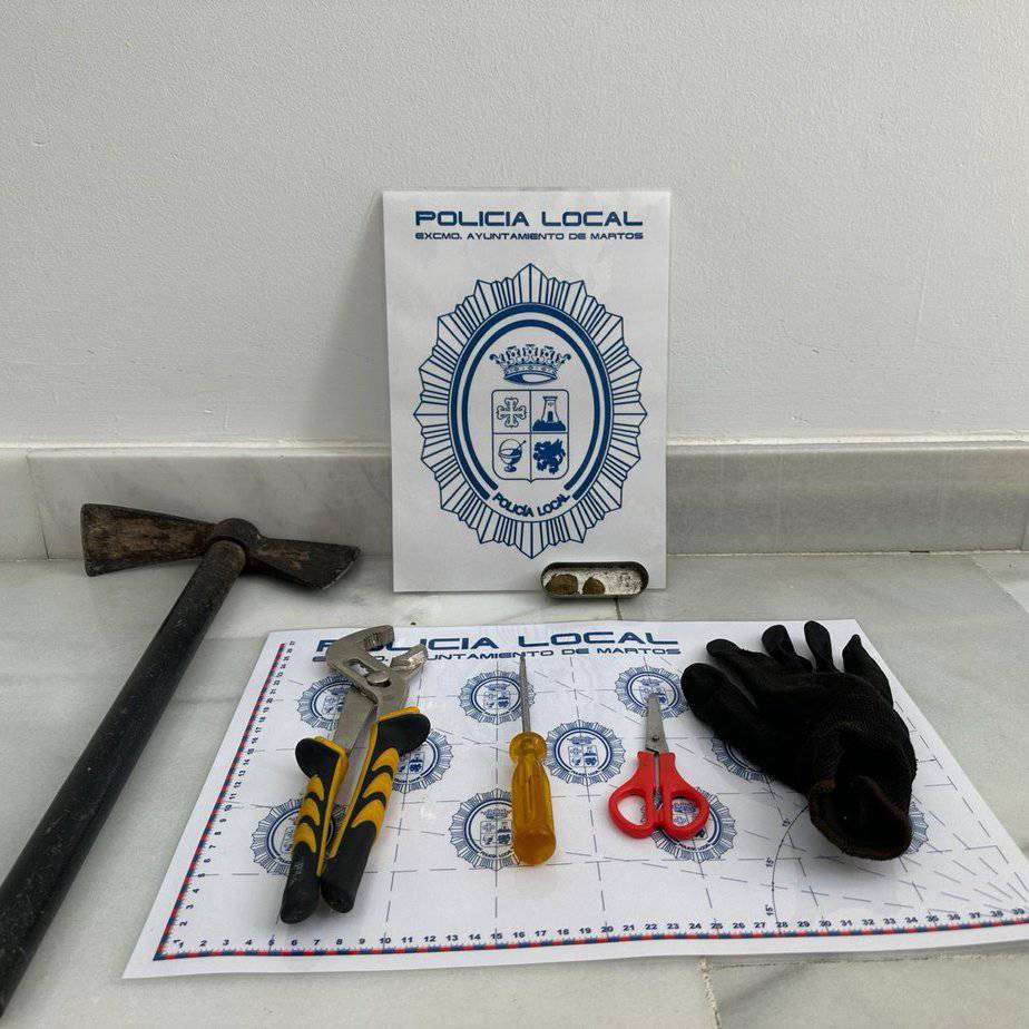 Todos estos utensilios fueron incautados, además de una lata metálica en cuyo interior había hachís.“Quiero finalizar, volviendo a poner en valor, la labor de los agentes, así como su entrega y dedicación para hacer de Martos una ciudad más segura cada día, destacando la importancia que tienen los controles nocturnos que se están llevando a cabo para evitar la comisión de delitos, ya sea por disuasión o como en este caso por intervención directa”, ha afirmado el concejal de Seguridad, Manuel Cortés.