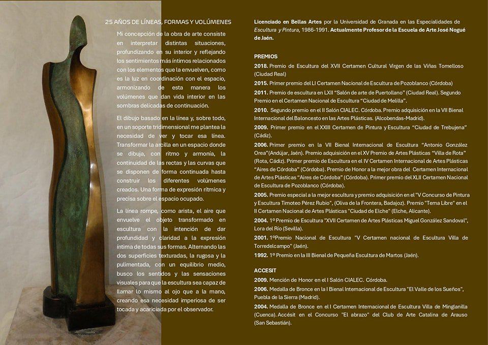 El actual profesor de la Escuela de Arte José Nogué de Jaén -licenciado en Bellas Artes por la Universidad de Granada- define su «concepción de la obra en interpretar distintas situaciones, profundizando en su interior y reflejando los sentimientos más íntimos relacionados con los elementos que la envuelven, como es la luz en coordinación con el espacio, armonizando de esta manera los volúmenes que dan vida interior en las sombras delicadas de continuación».