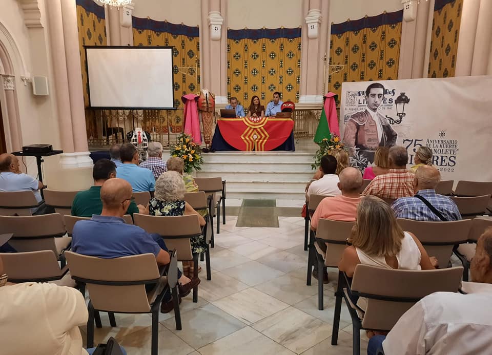 El presidente de la Plaza de Toros de Linares, Juan Pradas, y el periodista taurino Enrique Alonso, ofrecieron una interesante charla-coloquio en torno al libro ‘Lupe Sino: mujer y persona’