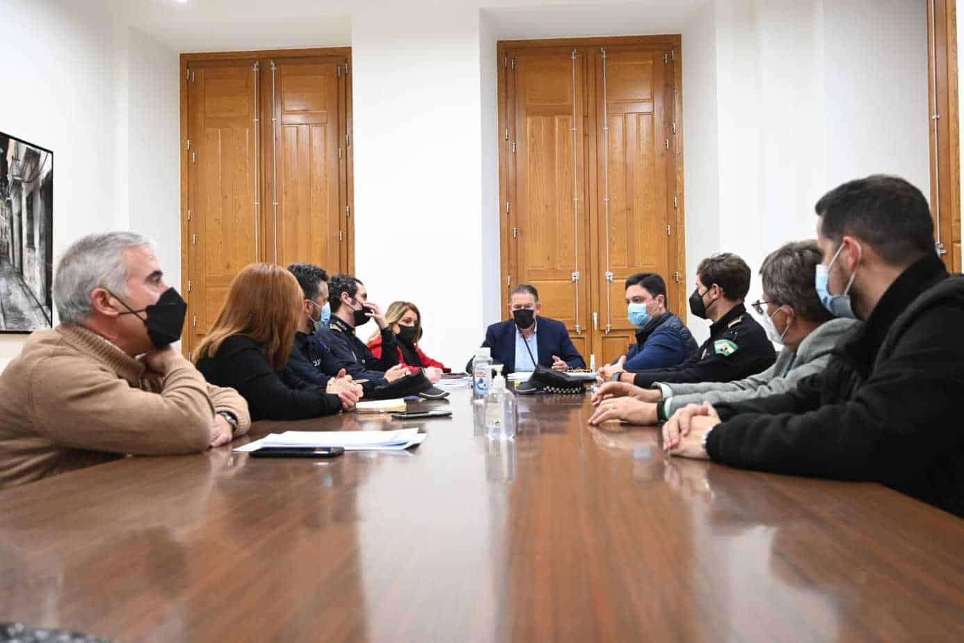 El alcalde de la ciudad, Raúl Caro-Accino, acompañado por la primera teniente de Alcalde y concejal de Cultura, Ángeles Isac, y el concejal de Infraestructuras y Servicios Públicos, José Luis Roldán, así como miembros de la Policía Local y representantes de la Agrupación de Hermandades y Cofradías encabezados por su presidenta, Mari Provi Hurtado, han mantenido esta reunión con el objetivo de coordinar los trabajos para garantizar que la próxima Semana Santa discurra con normalidad.