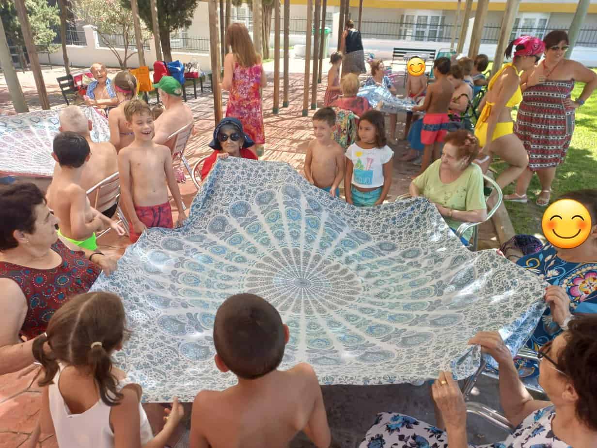 Los usuarios del Centro de Día Santa Marta y los menores que participan en el programa Diviértete han compartido en la piscina municipal «Bellavista» una jornada de convivencia intergeneracional.