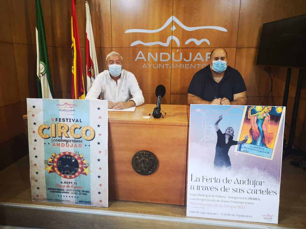Juan Lucas, concejal de Festejos, y Juan Francisco Cazalilla, edil de Cultura, han sido los encargados de presentar el programa de actividades alternativas que se ha diseñado desde el Ayuntamiento de Andújar para celebrar la “no” Feria de Septiembre, del 6 al 13 de septiembre.