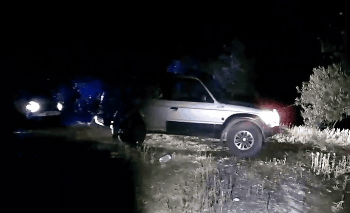 Inmediatamente, se inició una persecución con dos vehículos de la Policía Local por las calles de Martos, continuando por la autovía A316 sentido Torredonjimeno y por caminos y pistas para acabar en campo «a través», lugar donde se interceptó el vehículo.