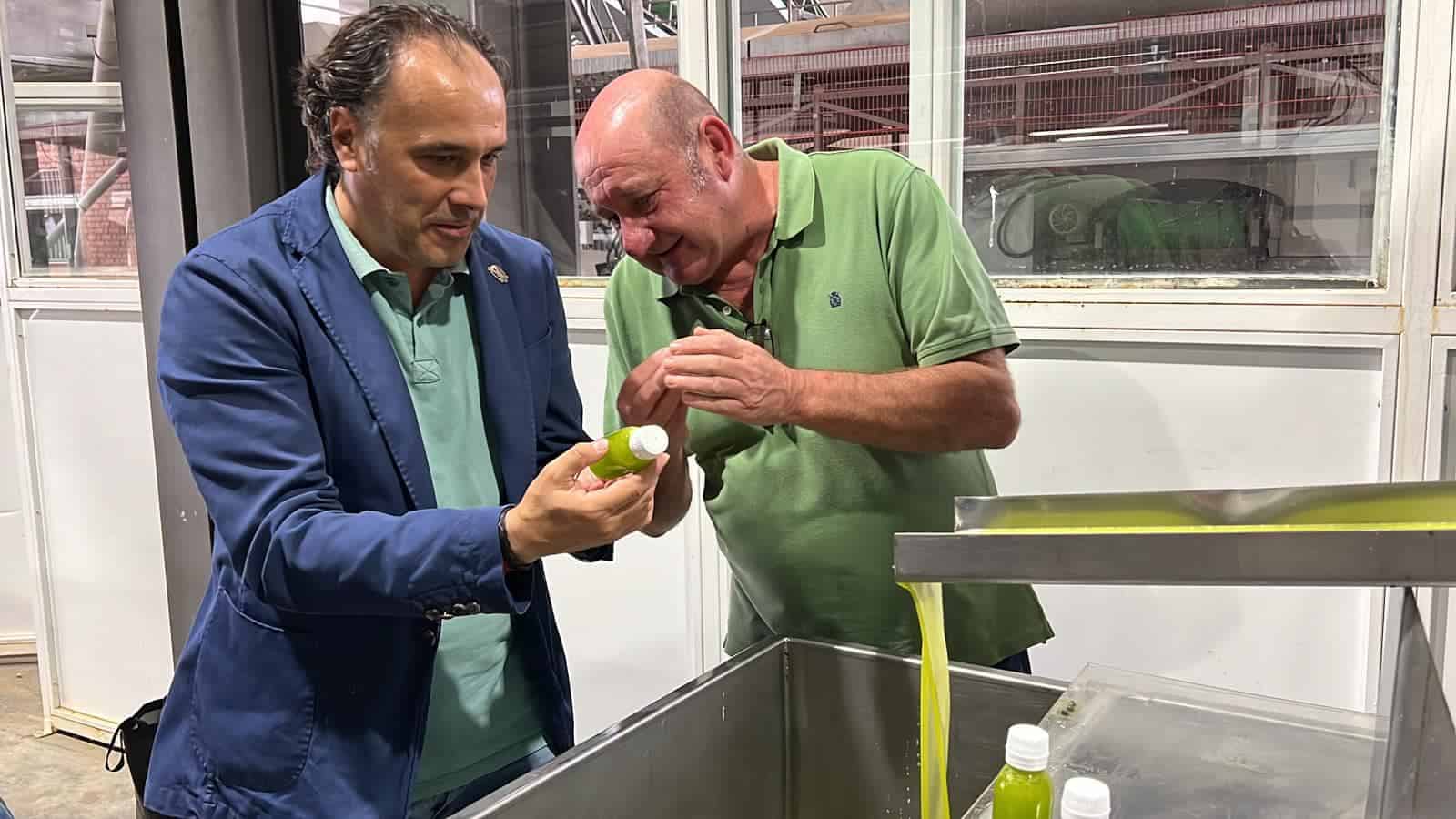 El alcalde de Torredelcampo, Javier Chica, asistió en las instalaciones del Grupo Oleocampo a la extracción del primer aceite de oliva virgen extra de la temporada cuyas virtudes alabó en sus redes sociales.