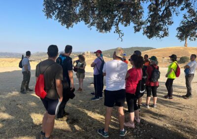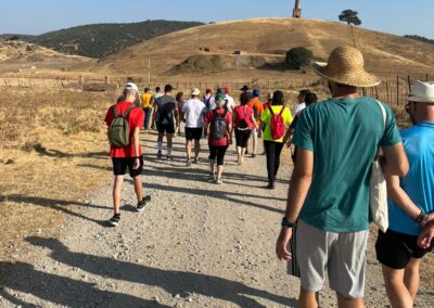 Las altas temperaturas retaron a un grupo que se había marcado el reto alcanzar la fortaleza de Navas de Tolosa. En el recorrido contaron con un guía de excepción. El director técnico del Museo de La Carolina, Pedro Ramos, fue el mejor cicerone durante el recorrido. No en vano, se encargó de dar todas las explicaciones necesarias, tanto sobre el contexto histórico de la zona como del territorio por el que discurre la ruta. Sus explicaciones permitieron al grupo hacerse una idea sobre el devenir de Navas de Tolosa.